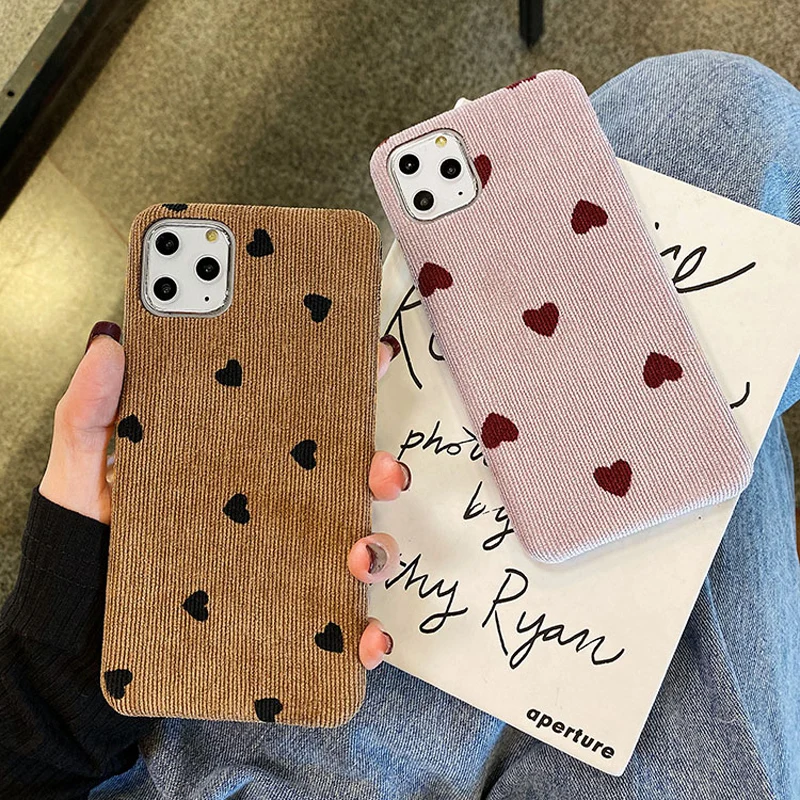 wonderful Lovebay Cloth Texture Love Heart Wave Point Phone Case For iPhone 11 Pro Max 6 6s 7 8 Plus X XS XR