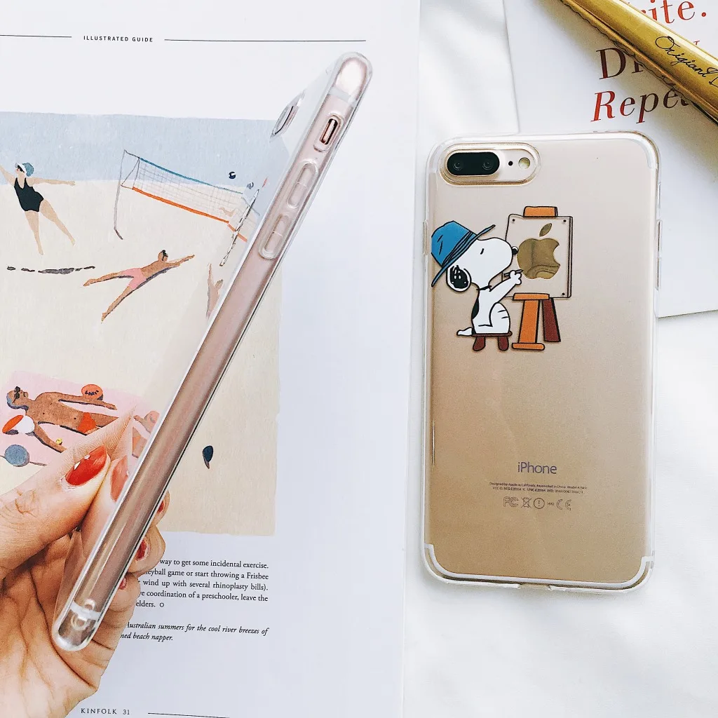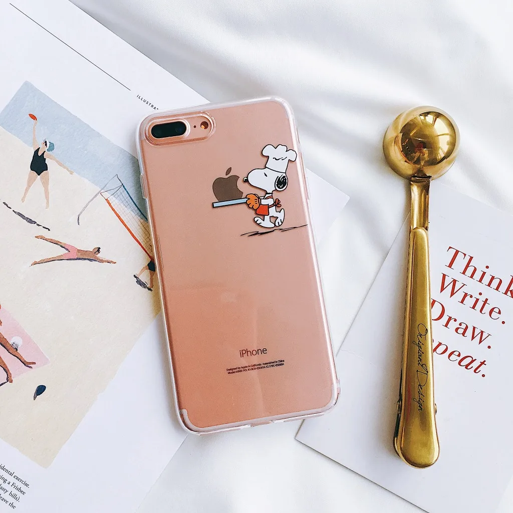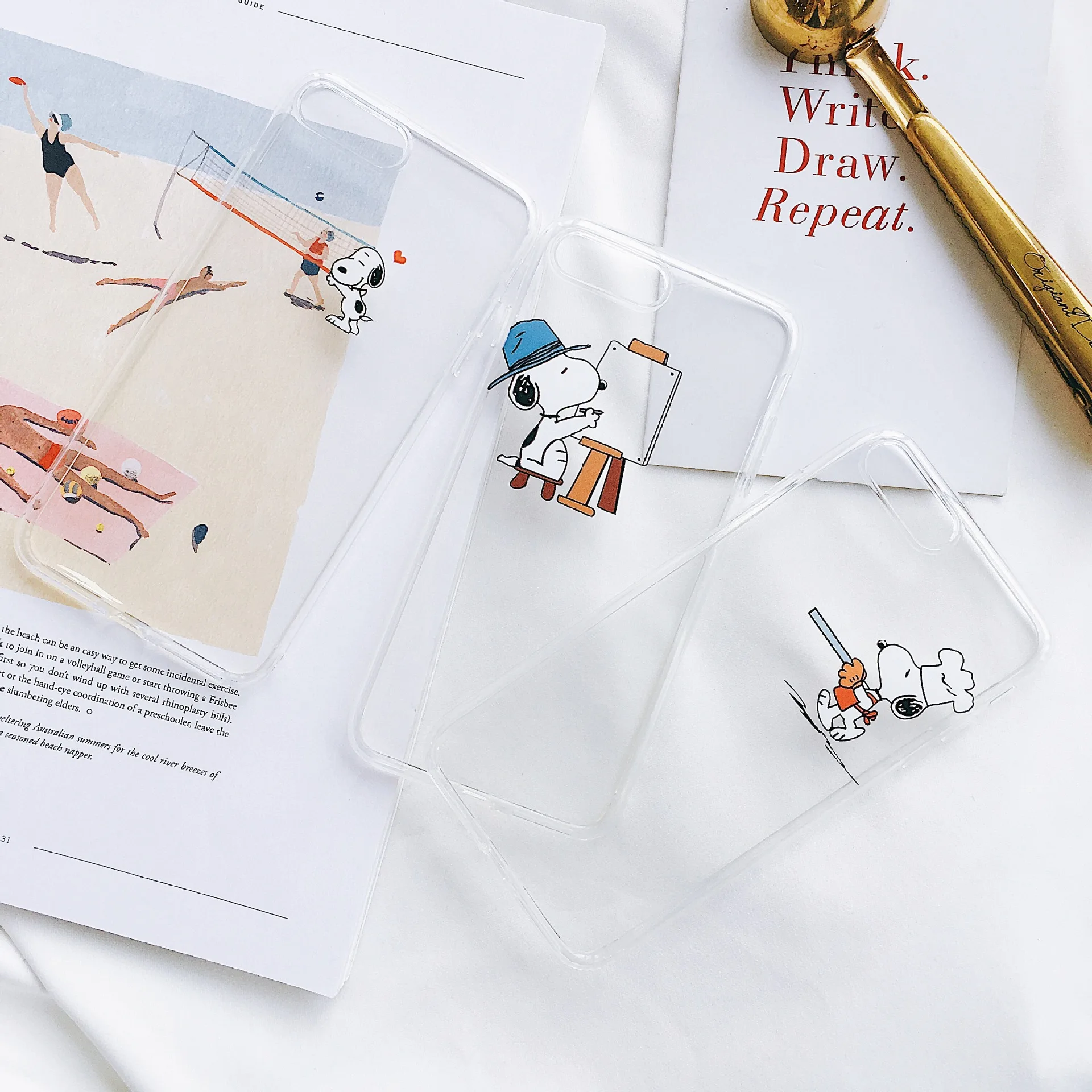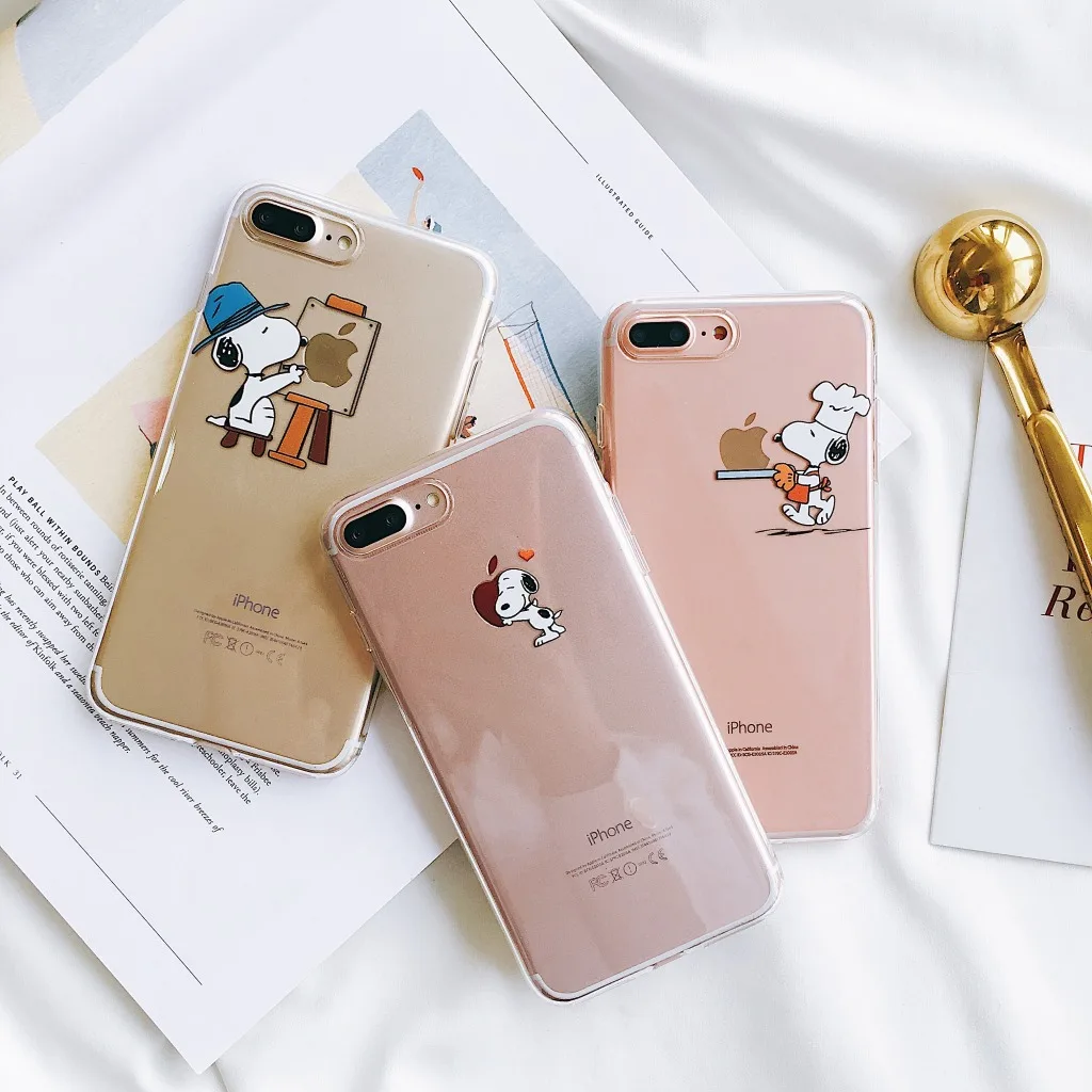 discounted Cute cartoon puppy transparent protective case for iPhone 8 7 6 6s Plus Xr X Xs Max design shatter-