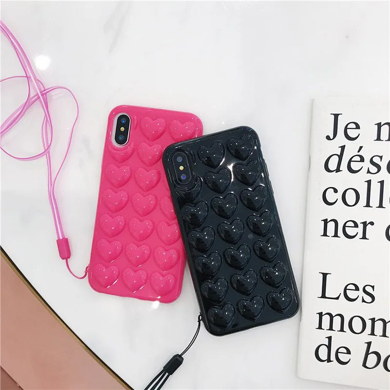 Finest Moskado 3D Love Heart Phone Case For iPhone 11 7 6s Plus Cartoon Fashion With Lanyard Cover For iPh