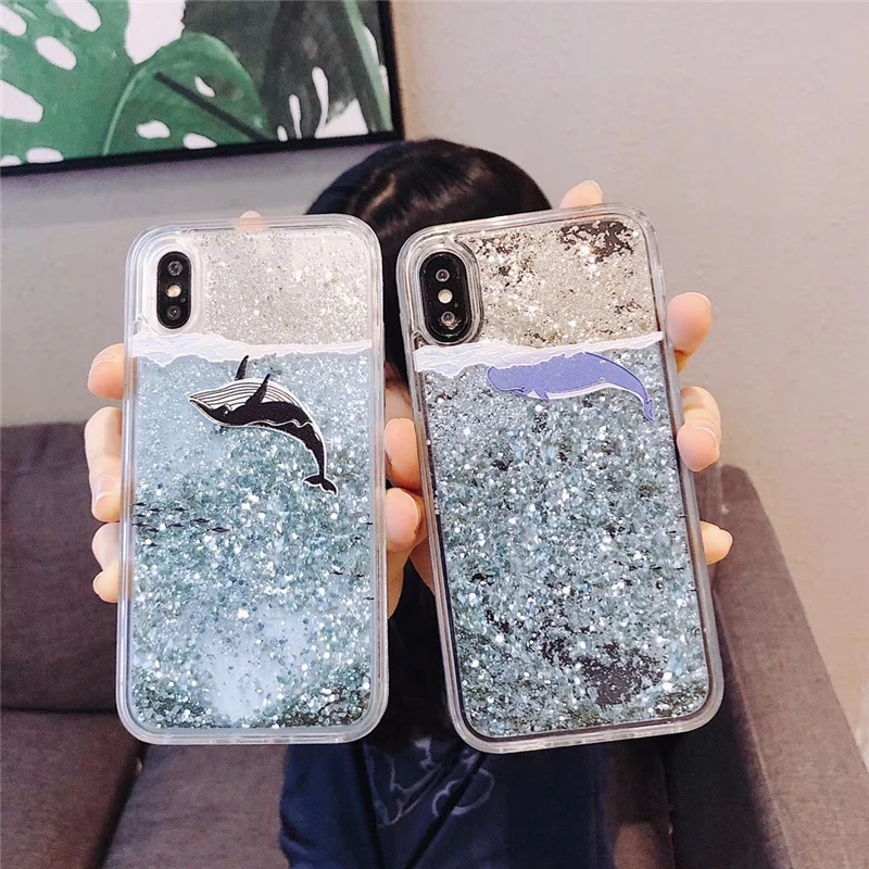 incredible Liquid Water Case Unicorn Whale Camera Dynamic Quicksand Glitter Bling Soft Silicone Cover for iPho