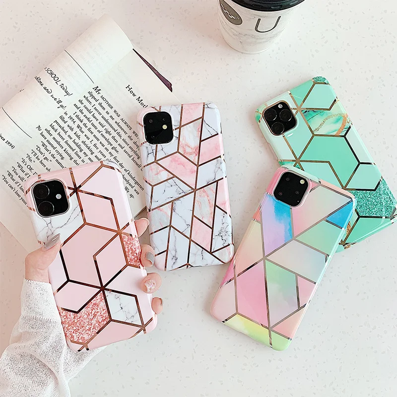 lower price Geometric Marble Case for IPhone 11 Pro Max Phone Case Silicone Soft Luxury Cover for IPhone XR XS
