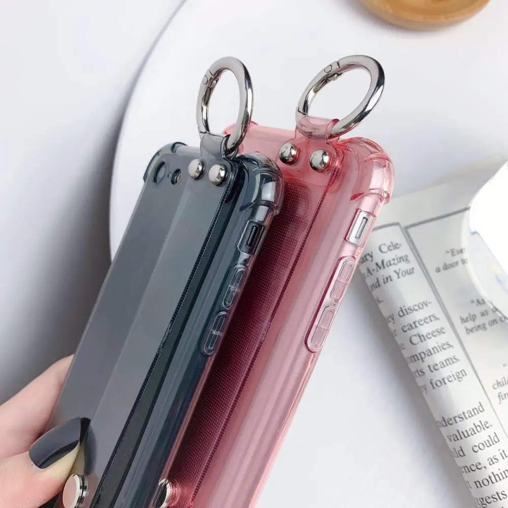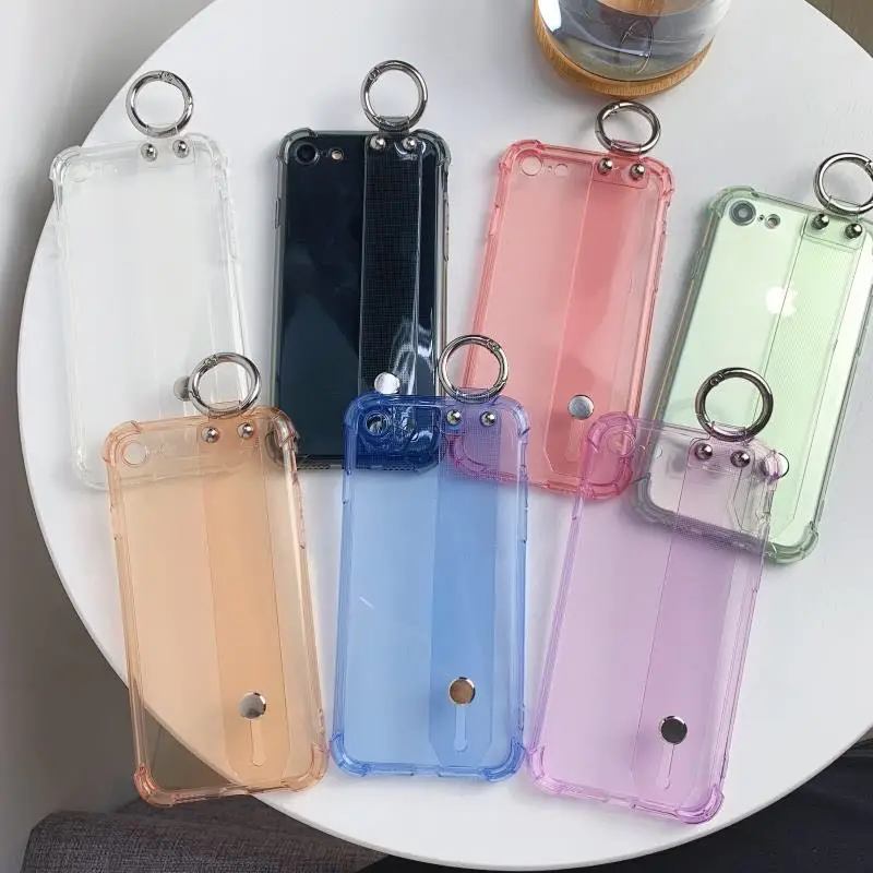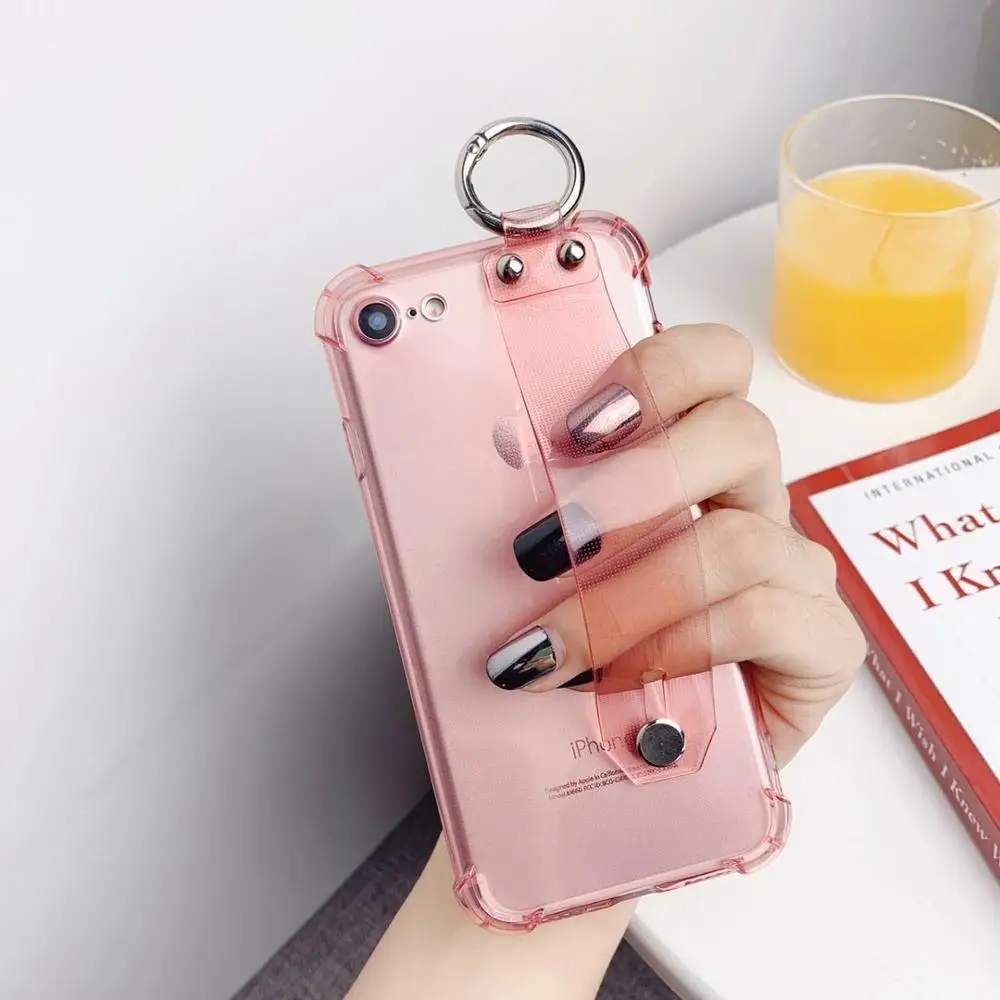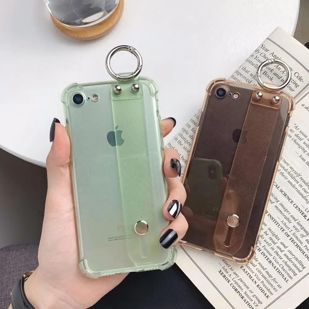 Very best Colorful Transparent Wrist Strap Phone Case For iPhone XS Max XR Stand Holder Case For iPhone 6 6s